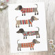 Enchidos bonitos de Dachshund ou cachorros-salsicha em tricô malhado. Perfeito para amantes de cachorros e ambulantes de cães.