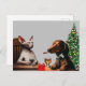 Cartão Postal Cão de Natal e Gato de solitário