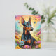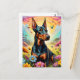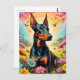 Cartão Postal Cão Doberman, Flores E Cena De Montanha