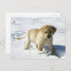 Cartão Postal Cãozinho de laboratório amarelo LR na neve