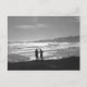 Esta é uma impressionante imagem a preto e branco de uma cena de praia na Cidade do Cabo