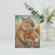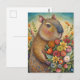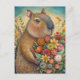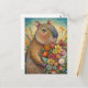 Uma ilustração engraçada em estilo de arte popular de uma capivara com um buquê de flores, o cartão postal perfeito para aniversário e outras congratulações para mostrar seu amor a um amante de roedores.