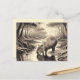 Este cartão-postal com um bebendo capybara de um riacho entre árvores e raízes de árvores, tem o aspecto de uma gravura antiga. É um cartão postal excelente para enviar a alguém que gosta de capybaras e de arte safena e ilustrações.