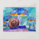 Cartão Postal Caracol Roxo e Cogumelos Azuis