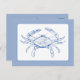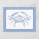 Este cartão-postal apresenta um caranguejo costeiro clássico em tons de azul e branco.