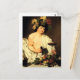 Caravaggio Bacchus cartão-postal. Pintura a óleo na canvas de 1595. Bacchus é uma das pinturas mais famosas do artista italiano Caravaggio. O trabalho apresenta um jovem vestido de deus clássico Baco com folhas e uvas no cabelo e uma tigela de fruta sentada diante dele. A pintura contém famosamente uma carapaça de vinho na qual se pode ver a imagem do pintor em seu calçadão. O copo de vinho que o jovem guarda também contém seu reflexo. Um presente de excelente para fãs de Caravaggio, arte barroca, pinturas mitológicas e vinho.