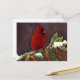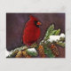 Uma bela imagem de um cardeal macho brilhante vermelho em um galho de pinheiros com poeira de neve completo com pinecones. Perfeito para sentimentos de Natal, ou qualquer outro feriado de inverno!