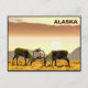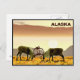 Dois touros de renas (Rangifer tarandus) são silenciados pelo sol que se põe enquanto lutam durante a corrida de outono na tundra. Leitura personalizável de texto, "ALASKA" também é exibido.