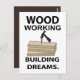 Cartão-postal de madeira de carpinteiro de madeira de madeira desenhado por Nisha Prabhu. Libere a sua criatividade com este cartão postal de trabalho de madeira com um carpinteiro qualificado no trabalho. Perfeito para trabalhadores da madeira, artesãos e qualquer um que aprecie a beleza da madeira artesanal. Envie uma mensagem memorável ou use como uma obra de arte exclusiva para seu compro ou casa. Pegue o seu hoje e inspire o artista dentro de você!