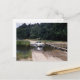 Um carro antigo dirigindo através da água em um parque. Personalize a mensagem neste cartão postal de carro clássico retrô inspirado.