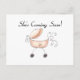 A mãe grávida a ser e a pai de ser vai amar esta fofa camiseta design, saco de tote, botões e outros itens de gravidez com uma carruagem rosa e texto que diz "Ela está chegando em breve!".