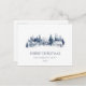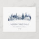 Carta ao Papai Noel Azul Vila de Natal de Inverno Cartão de Natal. Uma carta elegante ao Papai Noel em um estilo clássico com uma paisagem de inverno monocromática em cores azul-marinho e branco. Design elegante e sofisticado.