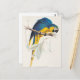 Cartão-postal Edward Lear Blue e Yellow Macaw. Pintura a óleo na canvas do século XIX. O pintor naturalista Edward Lear representou centenas de pássaros diferentes ao longo de sua carreira. Lear é particularmente famoso por suas belas ilustrações de aves tropicais como papagaios e coquetéis. Esta pintura de uma arara azul e amarela (Macrocercus Ararauna) é uma das obras mais espantosas de Lear. Ele mostra o pássaro sentado em um galho enrolado com seu famoso rosto branco e preto listrado em direção ao espectador. Um presente bonito para fãs de papagaios, pinturas naturalistas, ilustrações de pássaros e arte da natureza.