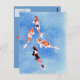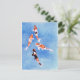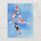 Ilustração a lápis colorida de quatro Koi ou Carp, flutuando num lago de água azul, um presente delicioso para quem ama peixe ou natureza. Também corresponde ao: