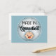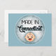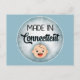 Este cartão-postal engraçado apresenta uma linda face branca de bebê que diz "Made In Connecticut" sobre um fundo azul. Perfeito para novos anúncios de bebês ou apenas para diversão.