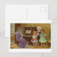 Esta é uma reprodução de um cartão postal antigo mostrando uma família de gatos cantando ao piano.