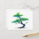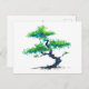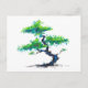 uma pintura aquosa tradicional de bonsai em cor azul vibrante e verde em cartão postal
