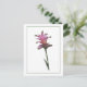 Este cartão postal é um dos vários da Deb's Digs com imagens botânicas como esta "Tulipa do Sião" rosa. Fundo branco com uma borda verde escura fina. >>>O que é um "desenho fotográfico"? Uma foto original, editada para se parecer com ilustrações botânicas clássicas.