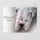Um adorável boxeador branco em um cartão-postal bem impresso. O texto "Missing You" (Você ausente) é personalizável