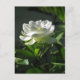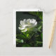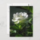 Este cartão mostra uma foto do grampeador dos jardins sombrios do sul, a fragrante Gardenia, as pétalas brancas brilhando ao sol brilhante da manhã.