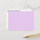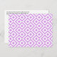 Cartão postal com lavanda bonito e padrão geométrico branco apresenta um design ornamental original. Os diamantes de lavanda com bordas brancas são cercados por meandros roxos leves que os rodeiam. Os ziguezags brancos separam os caminhos púrpuros enrolados e os diamantes em offset. Imagem criada digitalmente. Copyright © 2013 Claire E. Skinner. Todos os direitos reservados.