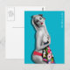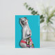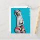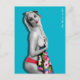 Cartão-postal com pinup trabalho de arte original ©"Miss Cherrie Au Lait - Bath". Fundo azul lacrimogêneo.