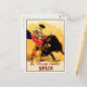 Cartão postal com poster de tourada vintage da Espanha. Orgulhoso matador em lutas ferozes com o touro selvagem. Alteramos e adicionamos texto e cores, assim como tamanho e posicionamento, tudo quando solicitado. Contacte-nos com as suas necessidades únicas e fazemos o resto!