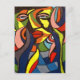 Um postal personalizado que apresenta uma pintura colorida de arte africana em vermelho, amarelo, verde, preto e coral.
