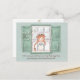 Este cartão-postal Anne of Green Gables apresenta nossa amada Anne espreitando para fora de uma janela com persianas verdes. As palavras "É minha experiência que você pode quase sempre apreciar as coisas se você decidir com firmeza que vai." estão escritas em castanho. O fundo é azul pálido. As cores incluem: verde-sábio, azul-claro, laranja, rosa e branco.