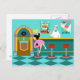 Sirva algo especial com este Cartão-postal Retro Soda Fountain. A arte minimalista, a design de desenho animado mostra o interior do lugar mais legal da cidade. É uma fonte de refrigerante de 1950, em toda sua glória de gatinho! No cenário de um aqua wall, podemos ver posters anunciando as especialidades da casa. Um poster mostra um hambúrguer e uma garrafa de pop pelo preço de negociação de 15 centavos. A outra poster mostra duas colheres de sorvete em um cone de açúcar por apenas 5 centavos. Com preços como estes, deve ser difícil ver sua cintura! Um idiota de soda mais competente está mandando o contador de chá com sotaques amarelos. O jovem com uma forte ética de trabalho está segurando um cone de sorvete com um solteiro de sorvete amarelo-limão - embora, para ser justo, possa ser abacaxi! O rapaz limpo está vestindo uma camisa branca, primitiva, com uma gravata arco preta e um chapéu branco com sotaques vermelhos. No lado oposto do balcão, vemos três fezes de bar vermelho e cromo. Empolgada numa das fezes está um adolescente loiro cuja boca está certamente a regar. Não está claro se a boca dela está regando sobre o cone de sorvete que está dirigindo seu caminho ou o jovem industrioso que está servindo. Ela está vestindo uma saia de poodle rosa e uma forma que se encaixa em preto. As fechaduras amarelas dela são puxadas de volta num rabo de cavalo clássico. Ao lado dessa beleza de um cliente, há uma jukebox colorida e clássica, que apresenta luzes castanhas, grãos de madeira, desfiladeiros e néon coloridas. Melhor do que isso, é certo que todos os maiores acertos de rock and roll do tempo! O chão deste salão de sorvete moderno de meio século é um padrão aqua e lacrimejante que está gritando para alguém experimentar todos os últimos movimentos de dança.
