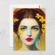Cartão Postal Cartão-postal da Mulher com Flores Amarelas