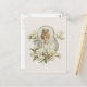 A imagem de vintage de uma garota enquadrada com rosas brancas harkens de volta aos dias do chá no salão, corte, castelos no céu e romance. Este lembrete de beleza simples aprecia a frente desses cartões postais para trazer charme e elegância para sua saudação, convite ou obrigado.