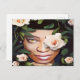 Este cartão-postal mostra uma mulher negra cercada por rosas e folhas.