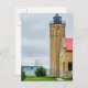 Cartão-postal com uma foto do antigo farol de Mackinac Point e a ponte Mackinac em Michigan, Estados Unidos. Procurando mais impressões ou produtos? Sinta-se à vontade para visitar minha loja: http://www.zazzle.com/timelessmomentsphtgy