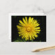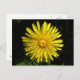 Este lindo cartão postal floral mostra uma fotografia de uma flor amarela de dandelion. A foto foi tirada usando macro fotografia, resultando em detalhes tão brilhantes que você pode ver as pétalas individuais e as sombras lançadas nelas.