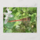 Este cartão-postal impressionante apresenta uma fotografia de uma bela libélula mais escura (Sympetrum striolatum). Esta espécie é principalmente marrom com manchas vermelhas em seu corpo e lindos olhos castanhos. A fotografia foi tirada de cima usando fotografia macro para um resultado incrivelmente detalhado. Vocês podem ver claramente ambos os pares de asas e todos os seus intrincados padrões.