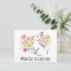 Imagem aquosa de flores de primavera amarelas e roxas com coelho branco sobre as pernas traseiras. O texto editável diz "Saudações Quentes à Páscoa".