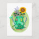 Vestuário, margaridas e um girassol amarelo brilhante somam-se ao decor ornamentado de uma água verde branca que pode morar. Ilustração original de Noël Snow.