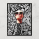 Um cartão postal único com meu próprio trabalho de arte desenhado à mão! Este é um design de arte de rabisco que apresenta o rosto de uma mulher vestindo óculos de sol.