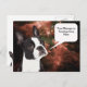 Este cartão-postal bonito e engraçado é excelente para o amante do cão, ele pode ser personalizado com qualquer mensagem de sua escolha. Diga, obrigado, se recupere logo, boa sorte, eu sinto sua falta, ou uma mensagem única da sua. Este Boston Terrier no Espaço certamente vai dar algumas risadas.