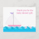Um cartão-postal de chá de fraldas de veleiro alegre, obrigado a anotar em pinks e roxo que coordena com os convites de chuveiros de bebês "Náutica de veleiro". Os gráficos estão em ambos os lados para um toque decorativo adicional. Arte vetorial original pela Menagerie da Night Owl, 2013. Para coordenar itens com este tema, consulte: www.zazzle.com/nightowlsmenagerie/gifts?cg=196191983639699941 no tema do chá de fraldas Náutico de Caivota por NightOwlsMenagerie, www.zazzle.com/nightowlsmenagerie