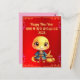 Usher no Ano do estilo Cobra Coreano com nosso Cartão-postal de Cobra de Bebê Coreano de Ano Novo mostrando um adorável cobra de bebê vestindo o tradicional Hanbok Coreano ao lado de uma bela bolsa de seda de ouro. O texto no cartão é personalizável para que você possa inserir suas saudações sinceras.