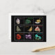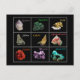 Coleção mineral virtual - cartão postal preto com nove amostras coloridas de cristal.