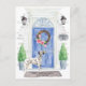 Anuncie seu novo discurso com nosso anúncio de na moda, com uma porta azul, Dalmácia, porta azul, tapete de boas-vindas, tabuleiro, topiários e uma coroa floral em um fundo de tijolo de cinza.