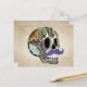 Ilustração desenhada à mão de um Dia do Crânio do Açúcar Morto a desportivar um bigode picante! Adicione texto para personalizar e você tem um cartão postal incrível! Esta é a versão colorida - há também versões em preto, branco e vintage, portanto, veja todos os designs e produtos disponíveis!