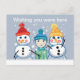 Desejando que você estivesse aqui para aproveitar a neve conosco Snowmen bonitos em bonecas e criança parecendo um pouco esperto enquanto a neve está caindo Mude as palavras para se adequar às suas necessidades