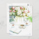 Cartão Postal Cartão-postal de Daisies e Tulips e Chá