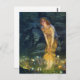 Cartão postal John Robert Hughes Midssumer Eve. Pintura a óleo na canvas de 1908. O pintor pré-raphaelita John Robert Hughes pintou uma variedade de quadros diferentes detalhando assuntos mitológicos e de fantasia. No meio do verão, Eve mostra uma bonito jovem que caminha pela floresta à noite e que tropeça numa dança de fada viva. As fadas brincam aos seus pés acenando em órbitas brilhantes e acenando as mãos. Um presente bonito para fãs de fadas, arte de fantasia e pinturas pré-raphaelitas.