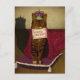 Este gato de mesa real traz uma mensagem especial para você, com seu profundo vestido vermelho e uma coroa joalhada, sentada majesticamente em sua almofada roxa, você deve ser muito privilegiado!