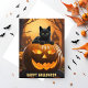 Enviem saudações inquietantes com o nosso Cartão-postal Feliz de Halloween, com uma ilustração cativante de uma abóbora maciça de jack-o-lanterna com um gato preto empobrecido no topo, tudo contra um pano de fundo assustador. A design é completada com um texto "Feliz Dia das Bruxas" na parte inferior. Este cartão postal oferece um toque personalizado, uma vez que o modelo permite que você adicione sua própria mensagem ou deixe o vazio de campo. Capture a essência da estação e compartilhe a emoção do Halloween com este cartão postal personalizável.